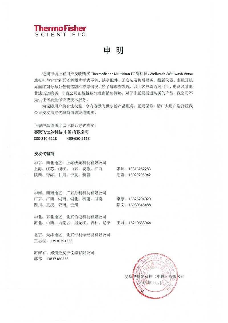 關(guān)于Thermofisher酶標(biāo)儀和洗板機(jī)的重要申明