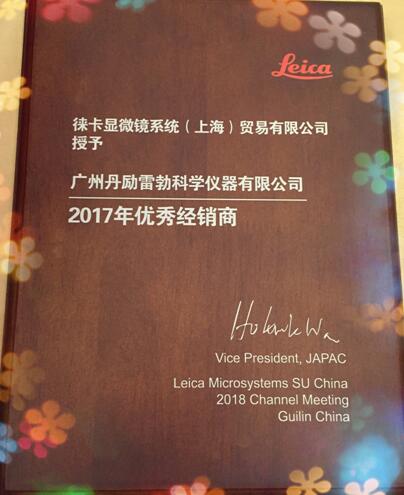 2018年1月26日,作為徠卡公司廣東省醫(yī)療及公共事業(yè)的簽約代理,廣州丹勵(lì)雷勃科學(xué)儀器有限公司(丹利集團(tuán)旗下子公司)參加了徠卡2018年度經(jīng)銷商大會(huì)暨答謝宴。2017年度,廣州丹勵(lì)雷勃科學(xué)儀器有限公司共計(jì)完成徠卡訂貨量130.6萬美金(僅寬場顯微鏡部分),YOY同比增長131%,喜獲徠卡2017年度優(yōu)秀經(jīng)銷商大獎(jiǎng)!